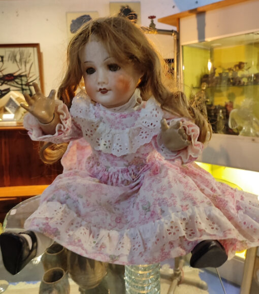 Nouveautés: Faïences, verrerie, poupées, mobilier et divers….