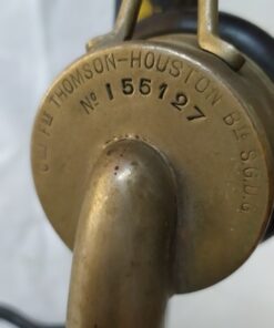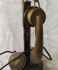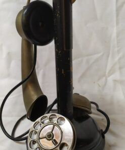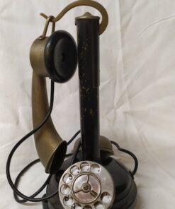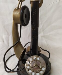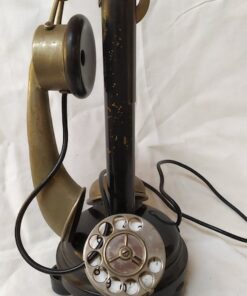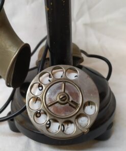 Téléphone colonne ancien a cadran, cornet et sonnerie.