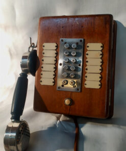 Téléphone mural standard, en bois, 1 combiné à 12 lignes et un bouton poussoir blanc