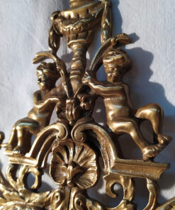 Fronton à décors d’angelots, coquille louis XV et guirlandes florales.