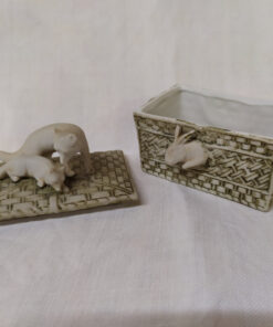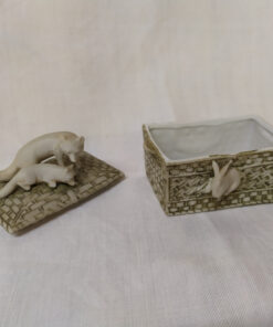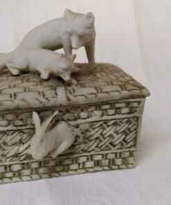 Boite à pilules en porcelaine, décors animaliers