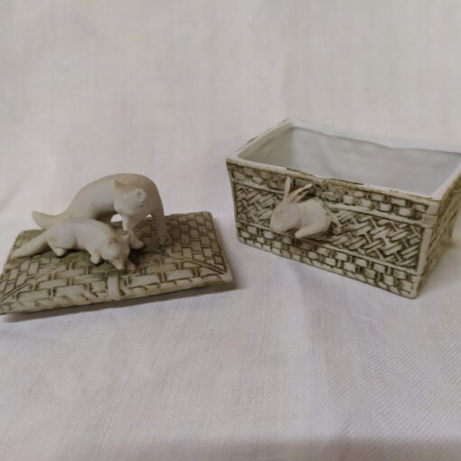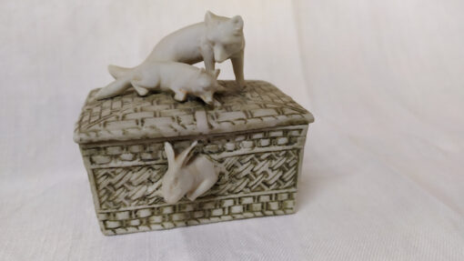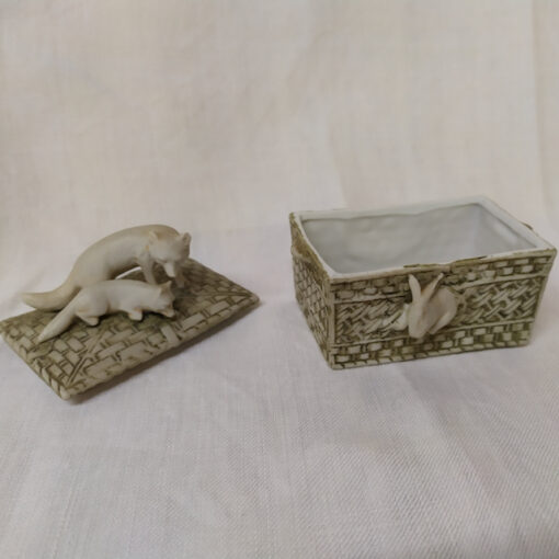 Boite à pilules en porcelaine, décors animaliers