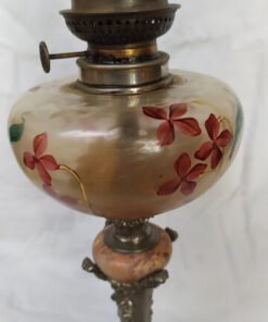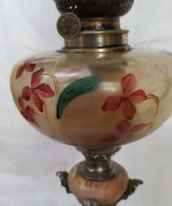Magasin antiquités et brocante Lampe Pétrole 1900 réservoir décors fleuris peints en Ligne