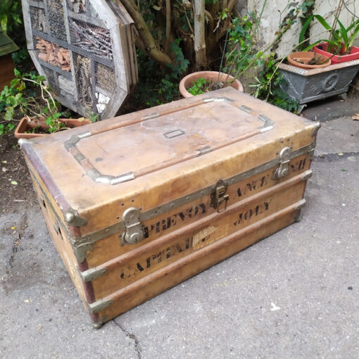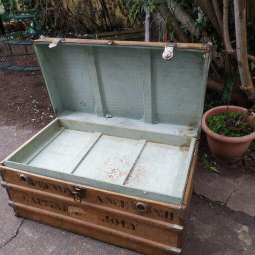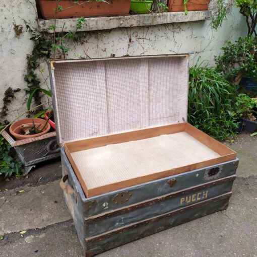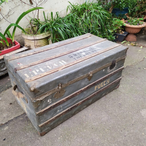 Étiquettes : Brocante en ligne, malle de voyage, meuble brocante