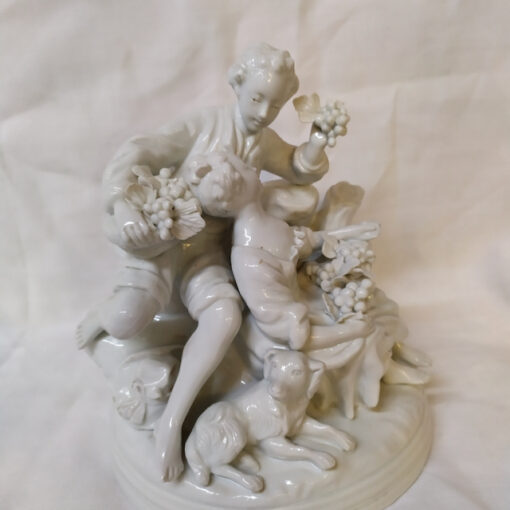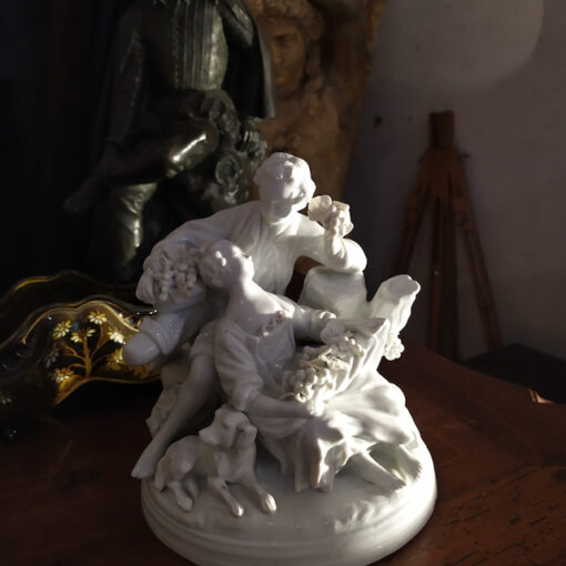 Statuette biscuit Capodimonte groupe » les mangeurs de raisins » d’après Boucher