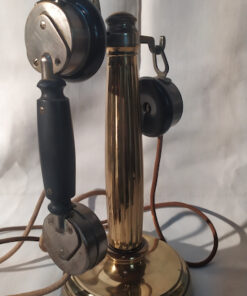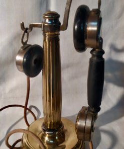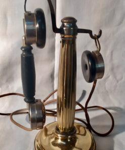Téléphone en laiton et bakélite à colonne cannelée avec combiné et écouteur.