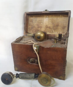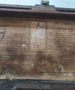 Le matériel le plus répandu à la fin du conflit est le téléphone de campagne modèle 1916. microphone, a été assemblé par Burgunder, atelier parisien implanté 48 avenue Félix Faure dans le 15e Arrondissement ainsi que le spécifie la plaque du coffret. remplacement lui même en cas de défaillance du microphone.